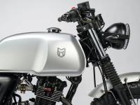 Starting with the twin-shock frame and four-stroke single-cylinder power-plant the Akita rolls on 18″ wheels with stainless steel spokes and black aluminium rims wrapped in deep tread knobbly rubber for that all-important Mutt stance. New rear gas shocks help keep the Akita chassis planted firmly on the blacktop.